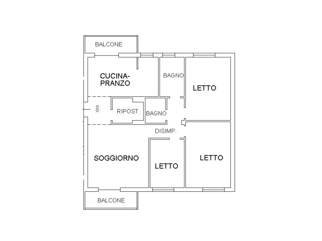 L’abitazione si apre su una luminosa sala con accesso al balcone, affiancata da una cucina abitabile anch’essa servita da balcone. La zona notte è composta da tre camere da letto, di cui due matrimoniali, e da due bagni, uno dei quali finestrato. Completano la distribuzione interna un comodo ripostiglio con zona lavanderia.