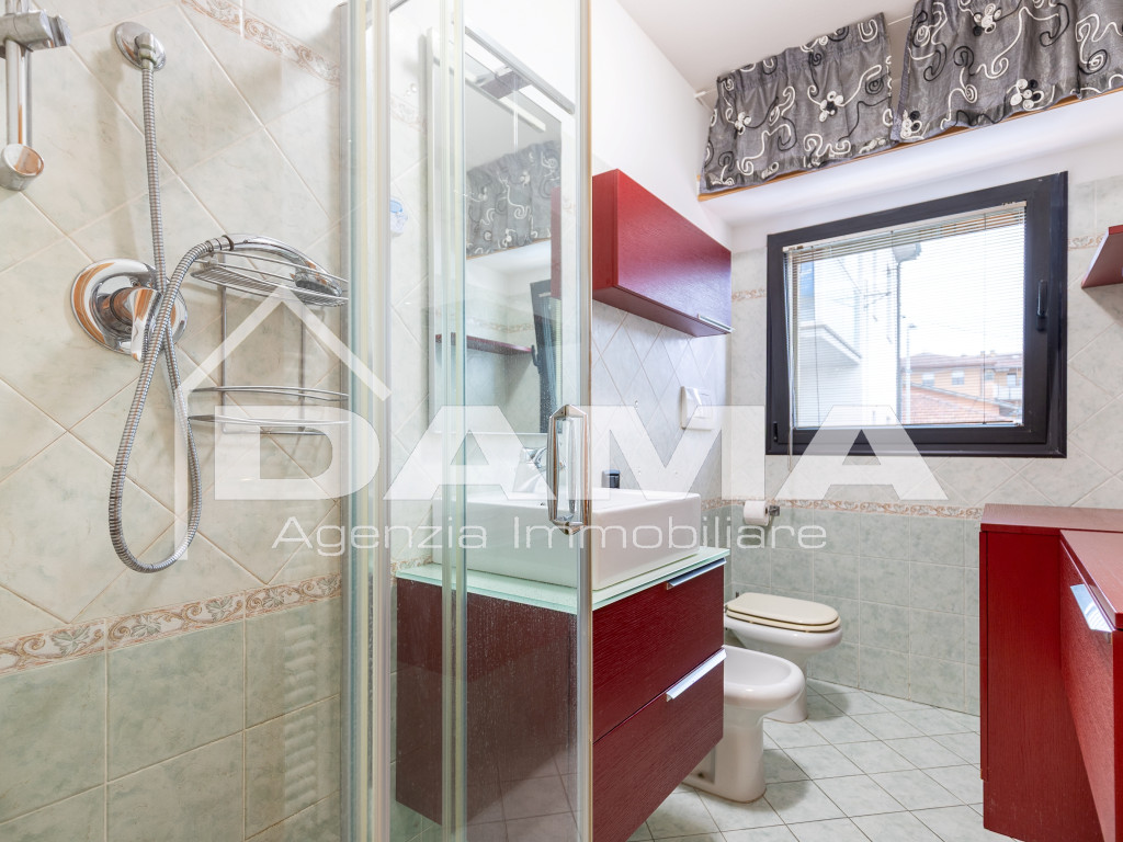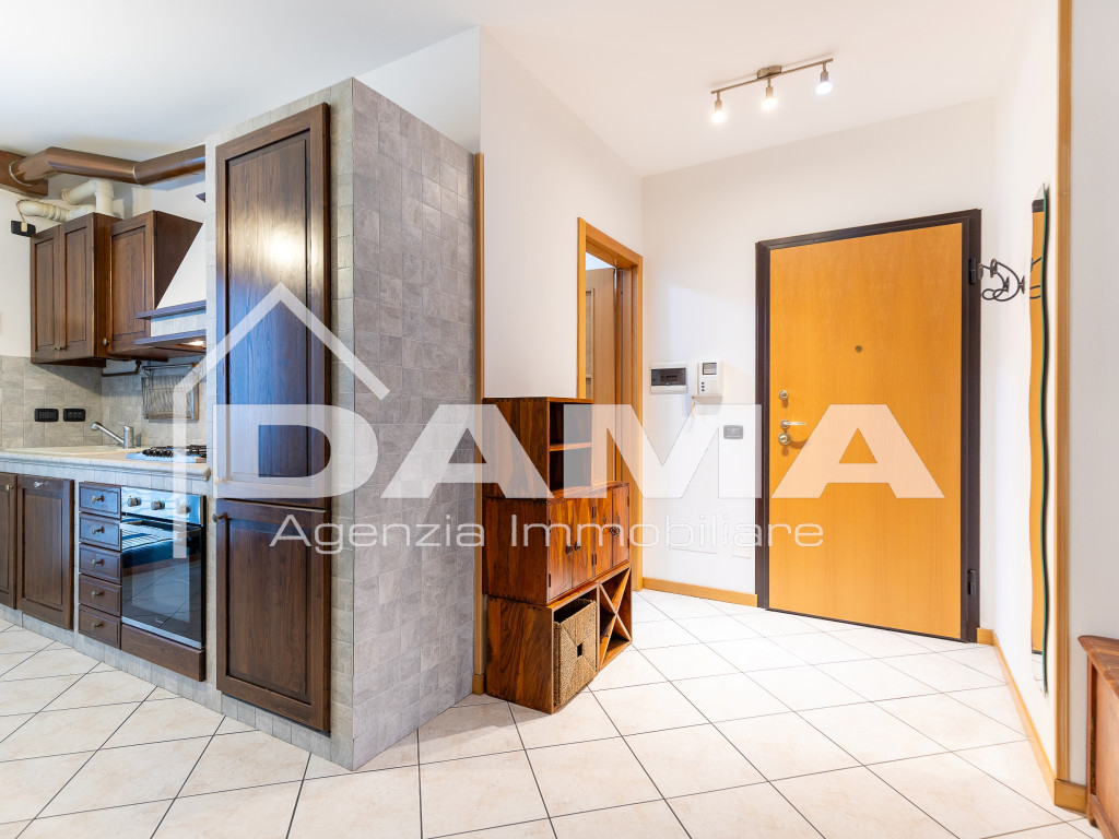 La soluzione si apre su un'ampia e luminosa zona giorno con cucina a vista, proseguendo poi verso la zona notte dove troviamo un'accogliente camera da letto matrimoniale, bagno finestrato completo di pratico box doccia.